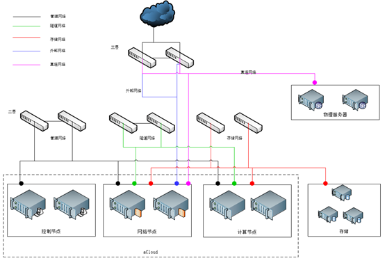 深信服提供的aCloud云管理平台,分三种主机角色,分别为:控制节点、网络节点、计算节点,具体配置调整如下: