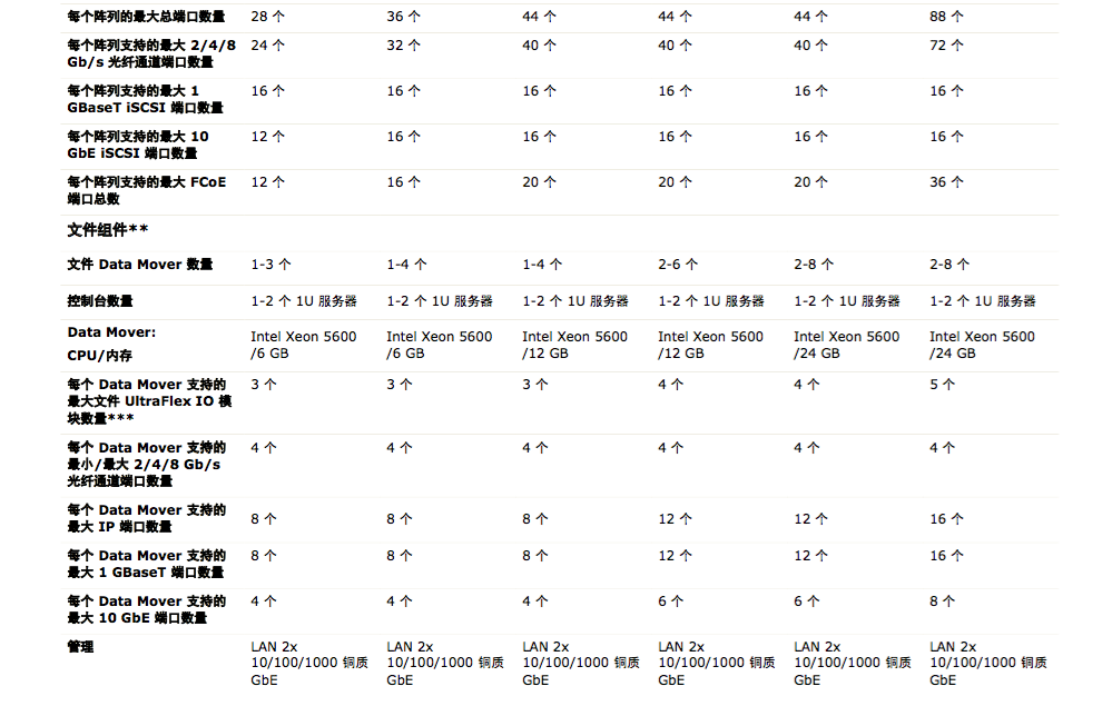 EMC VNX 基于强大的全新 Intel Xeon E5-2600(Sandy Bridge) 系列处理器,实现了模块化的体系结构,集成了用于数据块、文件和对象的硬件组件,并提供对本机 NAS、iSCSI、光纤通道和 FCoE 协议 的并发支持。本系列产品通过二到八个 Data Mover提供文件 (NAS) 功能,通过充分利用完全 6 Gb SAS 磁盘驱动器拓扑的双存储处理器提供数据块(iSCSI、FCoE 和 FC)存储。